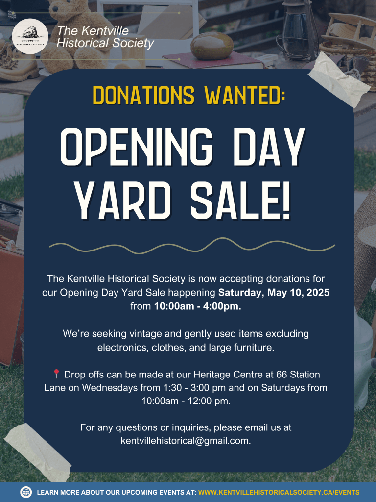 • This event is by Freewill Donation to the Kentville Historical Society